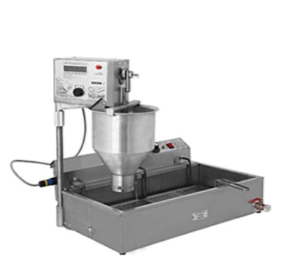 380 V, 5100 Вт, 300 пончиков/час, вес пончика 35-55 г, вместимость фритюрной ванны -12 л, аппарат из нерж. стали, дозатор из алюминиевого сплава, режим управления - полуавтомат