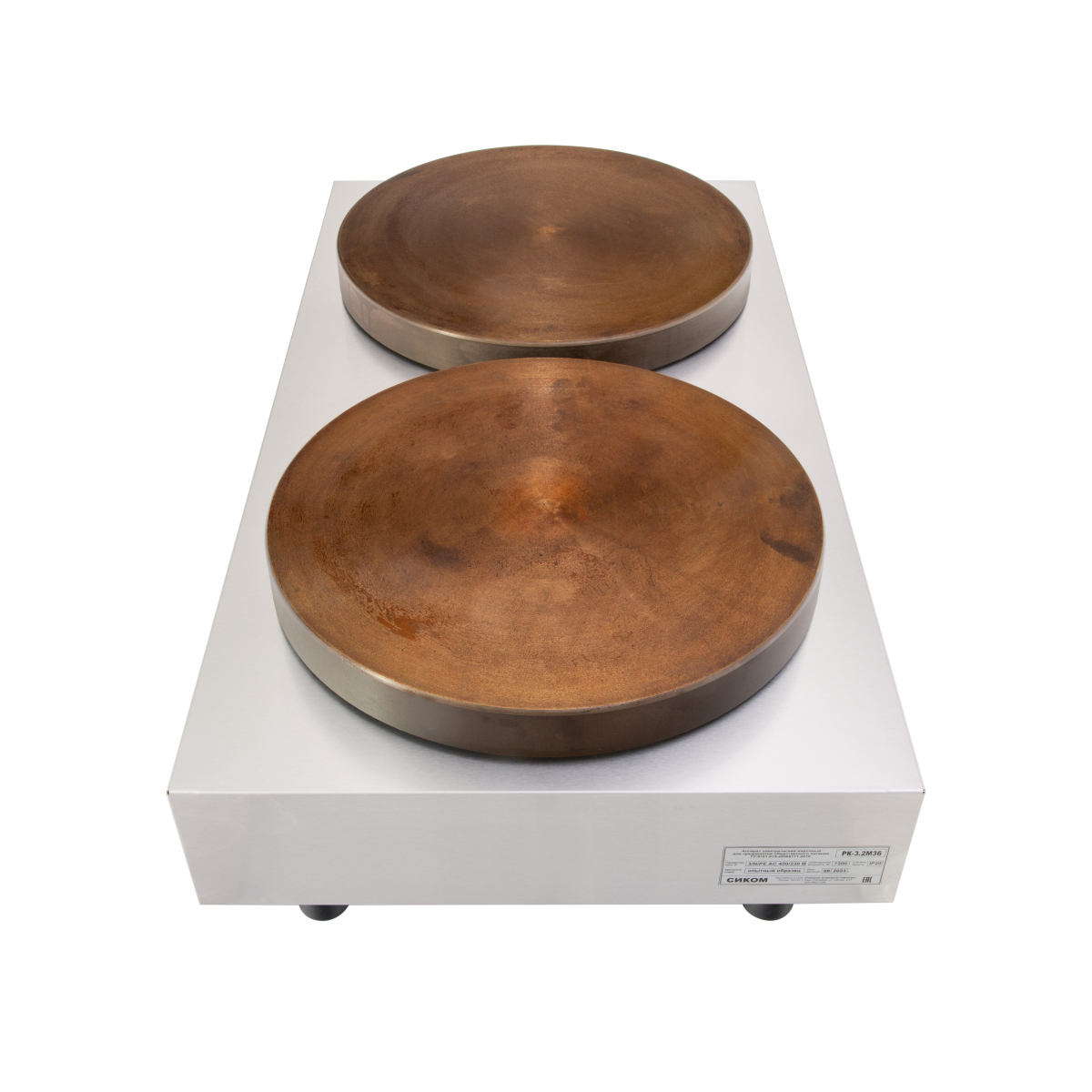 Блинница электрическая настольная СИКОМ РК-3.2М-36 с 2 круглыми жарочными поверхностями из чугуна. Диаметр чугунных жарочных поверхностей - 40 см.