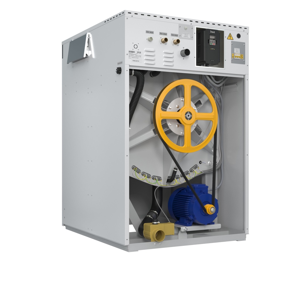 - Частотно-регулируемый привод. Обеспечивает плавный разгон и торможение барабана. Уменьшает нагрузку на элементы конструкции машины и фундамент, снижает вибрацию и шум.