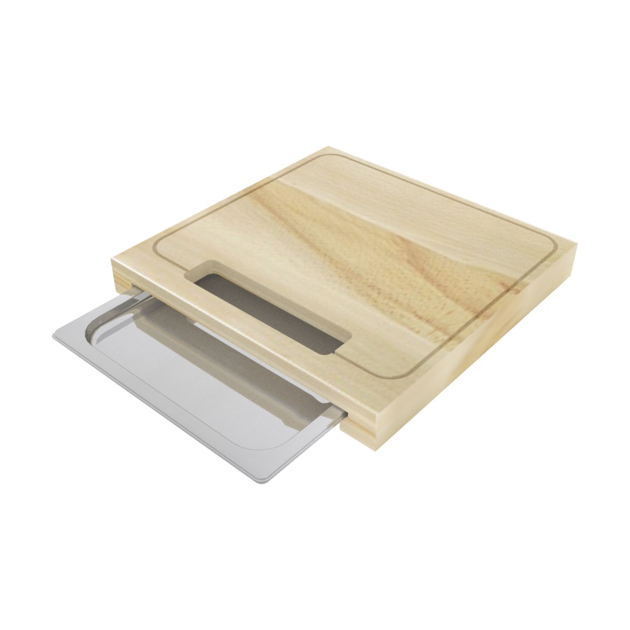 Доска разделочная изготовлена из натурального бука, имеет отверстие для сброса отходов и сбора жидкости, в комплект входит гастроемкость GN-1/2х20. Поверхность доски промаслена растительным маслом для исключения ее рассыхания.