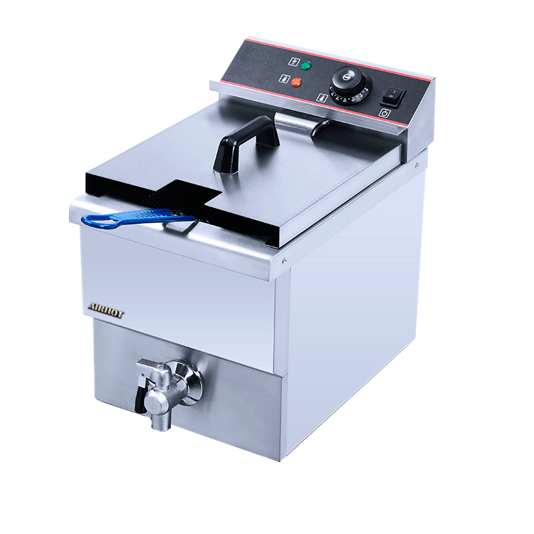 Фритюрница AIRHOT EF12 с краном применяется на предприятиях общественного питания для приготовления обжаренных во фритюре блюд. Благодаря аппарату обеспечивается наличие золотистой корочки у чебуреков, пирожков, картофеля фри и т. д.