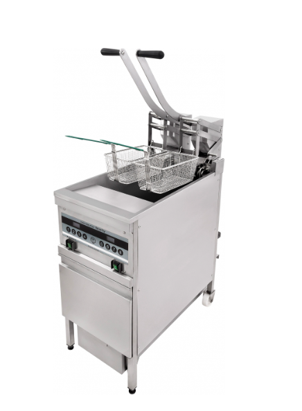 Механизм поднятия корзин гарантирует соблюдение установленных режимов приготовления, освобождает персонал от постоянного контроля за фритюрницей.