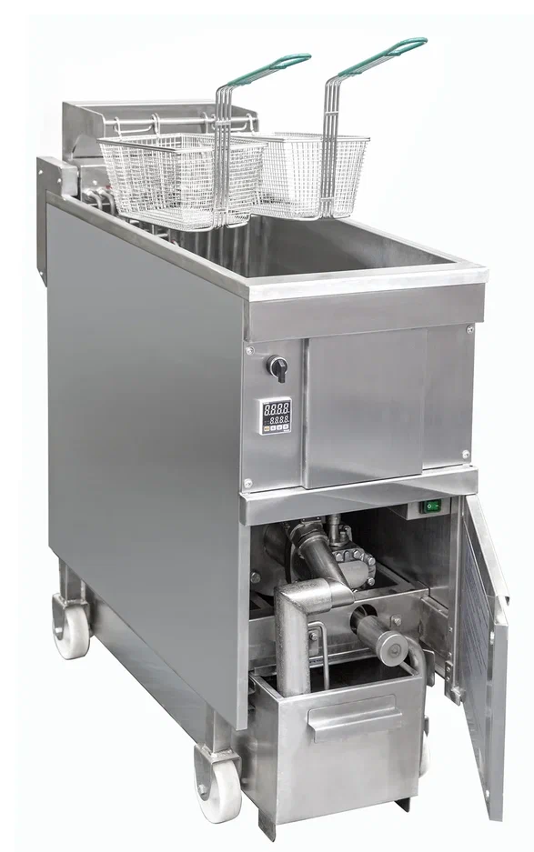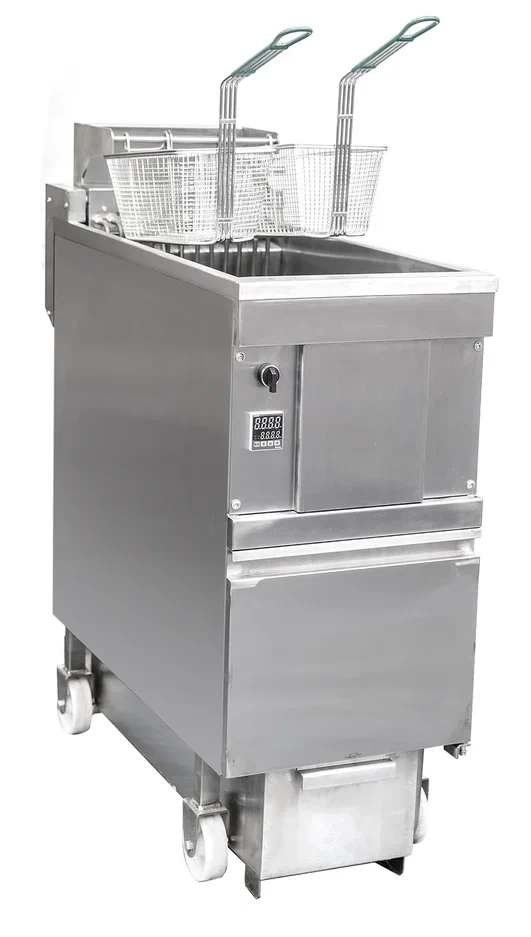 Фритюрница электрическая ROBOLABS ROBOFRY EF с системой фильтрации масла на закрытом стенде с одной ванной объёмом 25 л предназначена для жарки кулинарных изделий в большом количестве жира или растительного масла.