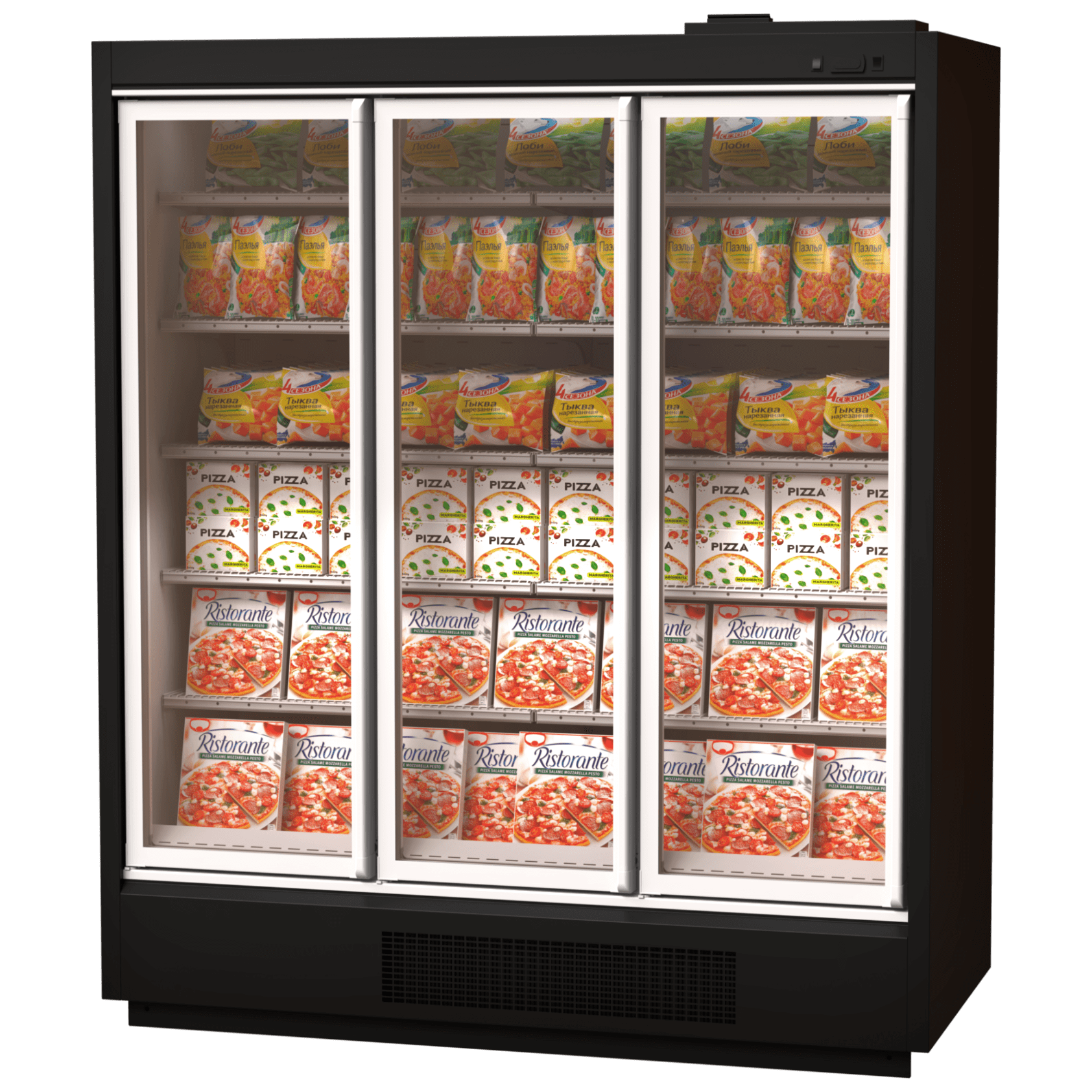 Низкотемпературная горка со встроенным агрегатом ЕНИСЕЙ 1875 имеет стеклянные распашные двери, подсветку и двухпозиционные ценникодержатели, применяется в торговле и общепите для демонстрации, хранения и продажи замороженных продуктов питания.