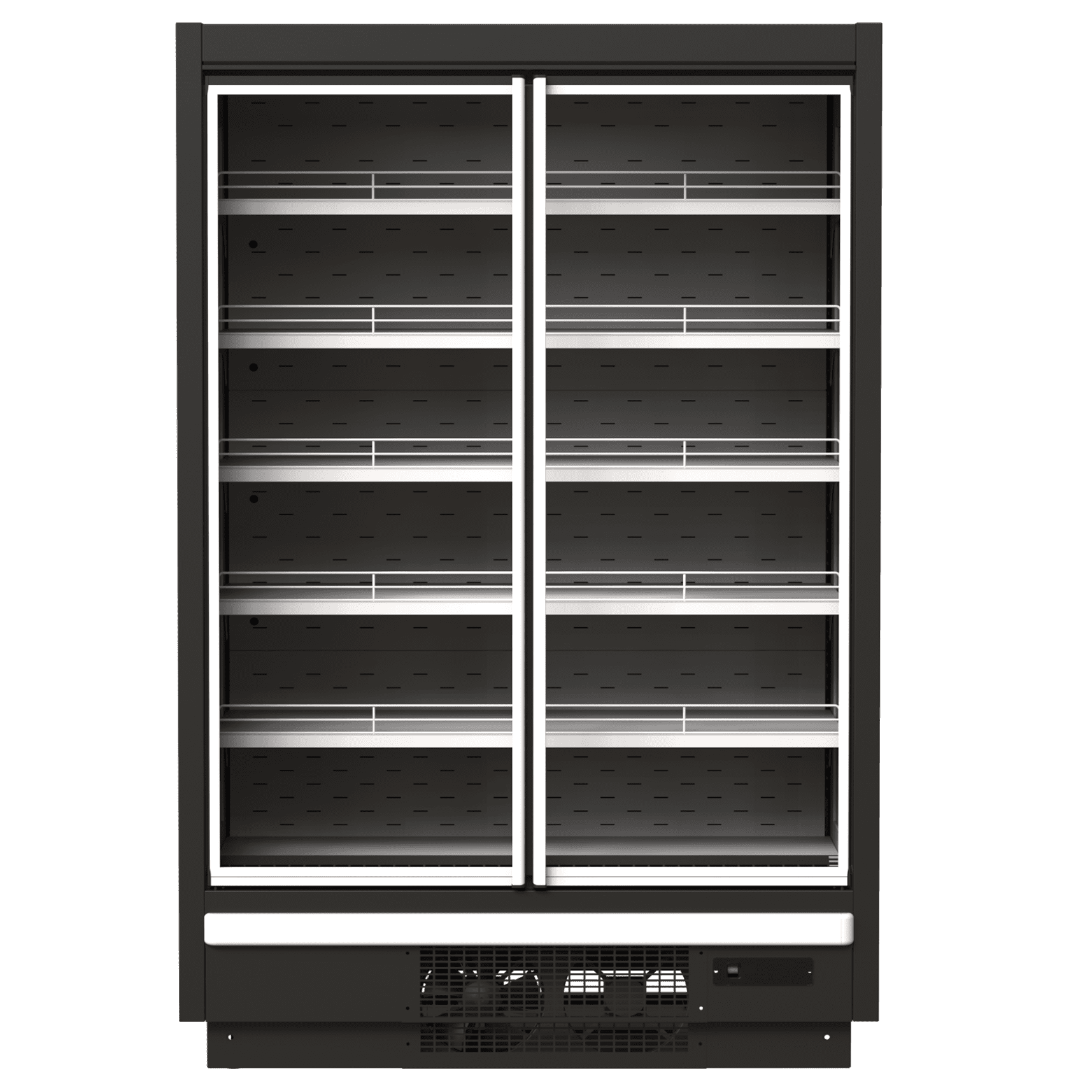 Среднетемпературная горка со встроенным агрегатом ПРАГА 1250 имеет стеклянные распашные двери, подсветку и двухпозиционные ценникодержатели, применяется в торговле и общепите для демонстрации, хранения и продажи продуктов питания.