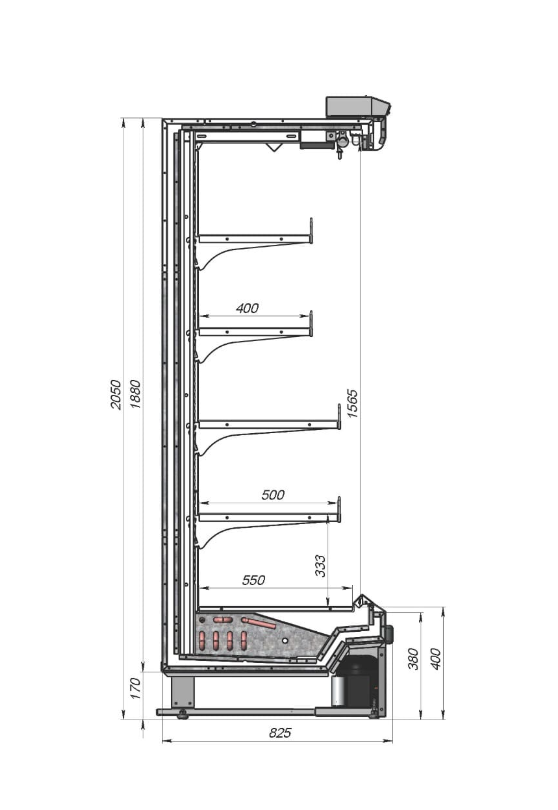 0...+6°С; динамическое охлаждение; среднетемпературная со встроенным агрегатом; открытая; 1875х800х2050 мм