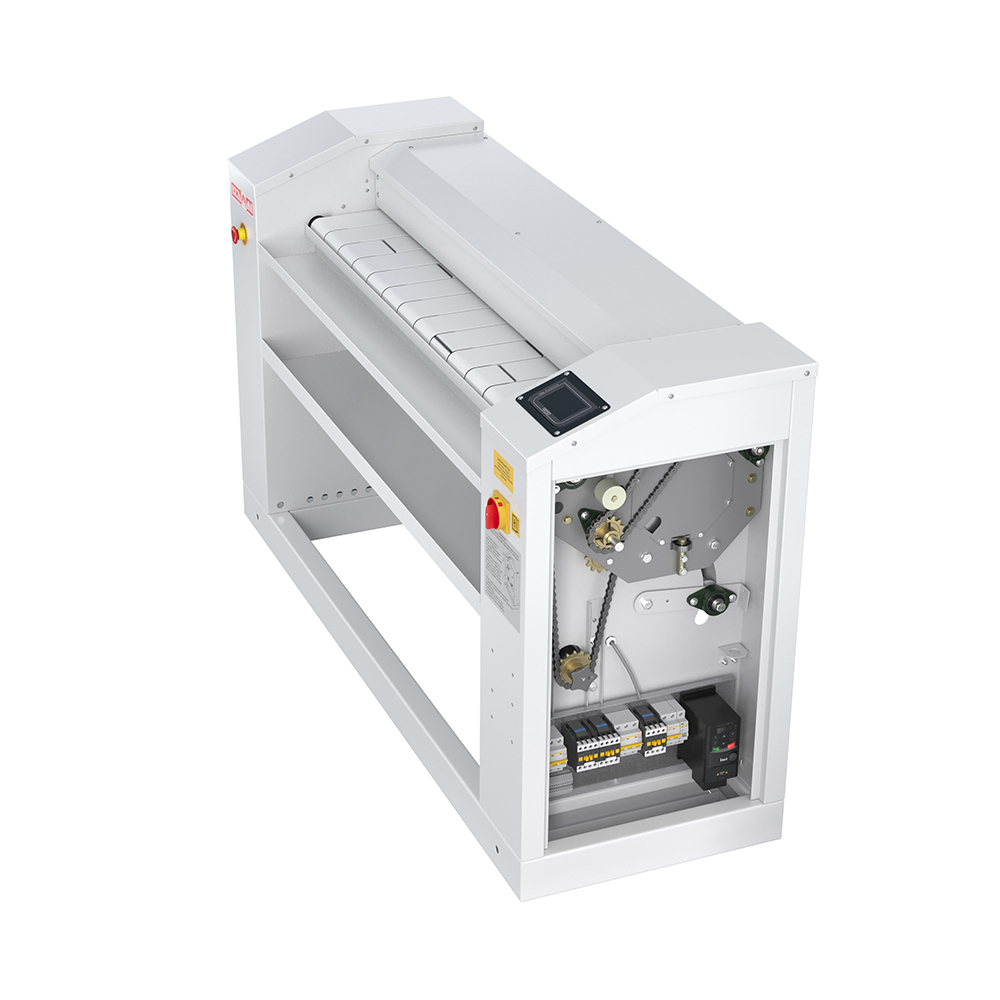 Обеспечивает плотный прижим ткани к поверхности гладильного цилиндра, разглаживает поперечные и продольные складки на белье, значительно повышая качество глажения.