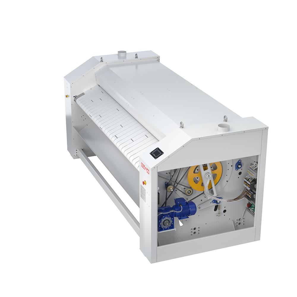 Идеально бережно отделяют бельё от гладильного цилиндра на выходе из зоны глажения в случае его прилипания (из-за перегрева, наличия пропиток в ткани и т.д.) и направляют его в принимающий лоток.
