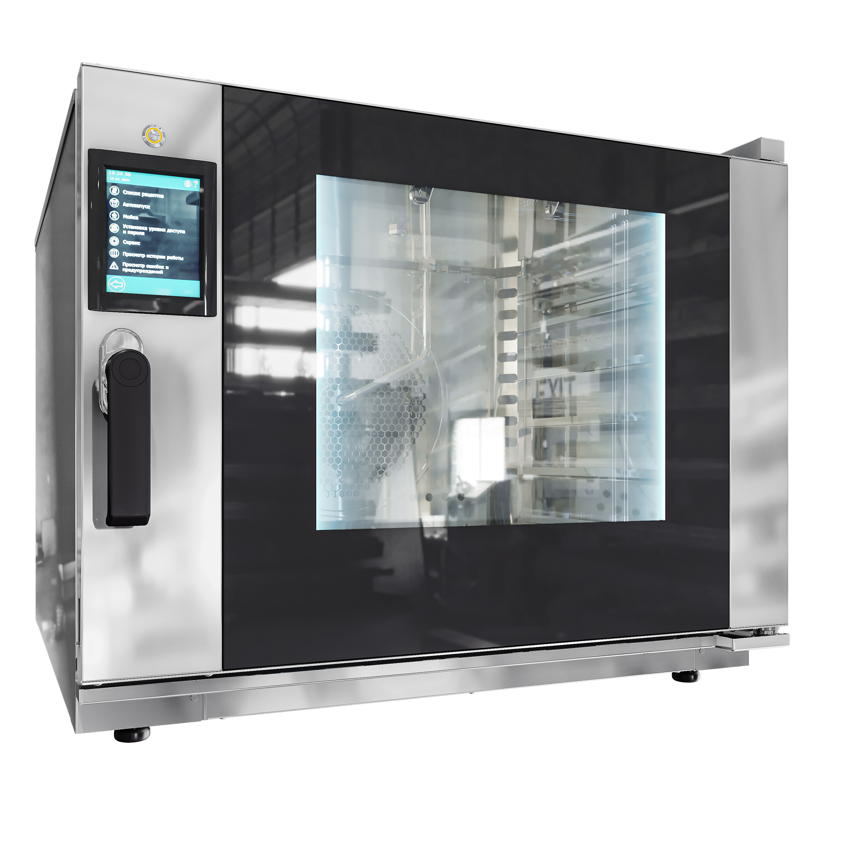 Конвекционная печь КЭП-5ПП предназначена для приготовления и разогрева блюд, а также выпечки хлебобулочных и кондитерских изделий на предприятиях общественного питания. Управление осуществляется через электронную панель управления (Touch панель), расположенную на двери печи.