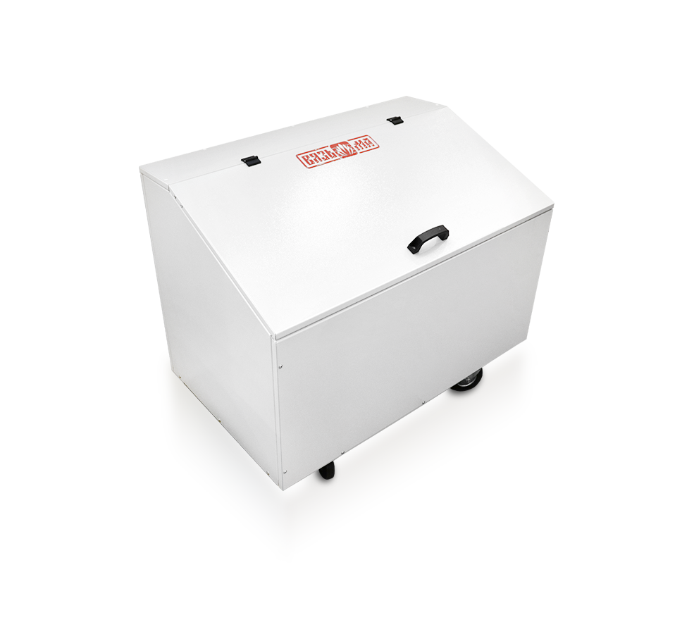 Установлен на 4 поворотных колеса. В открытом положении крышка короба удерживается пневмопружинами. Имеет разборную конструкцию для минимизации габаритов при транспортировке или хранении