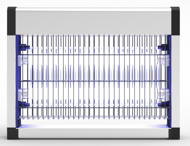В комплект электрической ловушки входят 2 УФ лампы мощностью по 10 Вт, рассчитанные на 8000 часов работы. Излучение ламп не представляет опасности для людей и домашних животных. Оно привлекает насекомых в любое время суток, в том числе и при дневном свете. Насекомые попадают на металлическую решетку, находящуюся под высоким напряжением (2500 В), и погибают. Лампа уничтожитель насекомых заключена в прочный корпус из алюминиевого сплава. Благодаря тому, что металлические решетки расположены с обеих сторон, площадь действия электромухобойки значительно увеличивается. Ультрафиолетовая мухоловка может быть размещена на стене, на прилавке или подвешена к потолку (в комплект входит цепь для подвешивания).