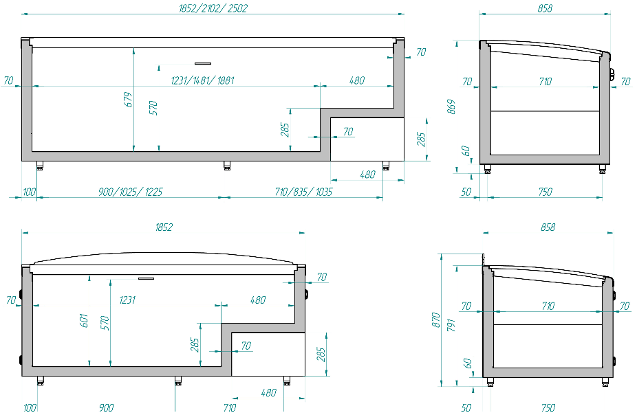 - Охлаждаемый объем - цвет решеток/делителей RAL 9003