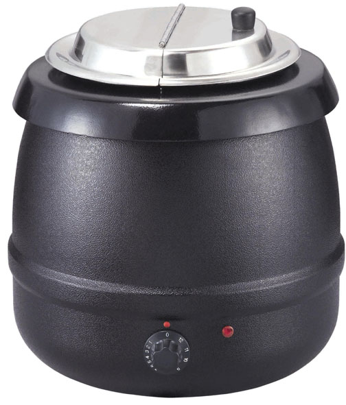 Для удобства раздачи крышка выполнена из двух половинок, одна из которых откидывается на шарнире. Температура супа регулируется при помощи ручки термостата, которая градуирована арабскими цифрами от 0 до 12. Рекомендуемое положение ручки для сервировки горячих блюд – от 1 до 8.