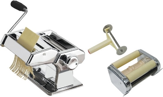 Тестораскатывающая машина GASTRORAG QF‑150+QJ предназначена для раскатки теста при приготовлении макаронных изделий как дома, так и на предприятиях общественного питания и торговли. В комплекте съемная насадка-лапшерезка (тальолини 2 мм/феттучине 6,5 мм), насадка для равиоли (2 в ряд, размеры 45х45 мм).