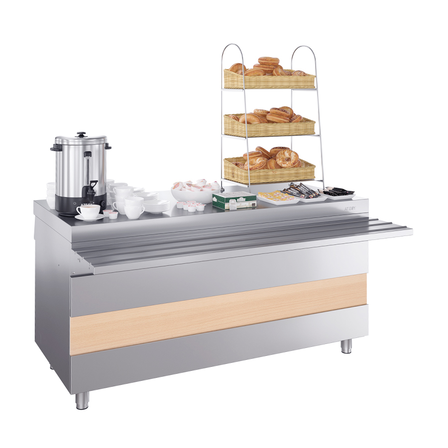 Прилавок для горячих напитков предназначен для выкладки продуктов и напитков, не требующих подогрева или охлаждения, а также для установки дополнительного оборудования и приспособлений.