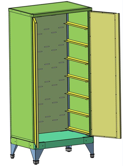 Сварной каркас выполнен из металла с покрытием, полки - из окрашенного металла.
