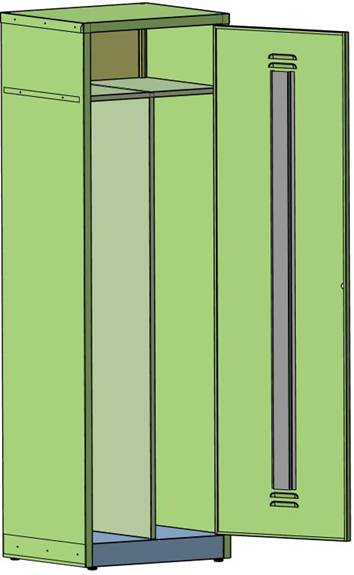 Шкаф имеет вентиляционные отверстия. Выполнен из металла, устойчив к повреждениям и царапинам.