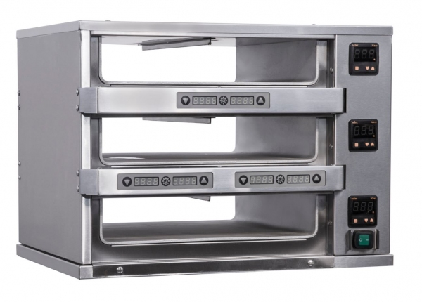 Мультихолдер с электронной регулировкой температуры ROBOLABS МН-3-2М-T2 сухого типа, сквозного исполнения оснащен 3 отсеками для 2хGN1/3-65 мм каждый (общая вместимость 6хGN1/3-65 мм), которые расположены в 2 ряда и 1 колонку