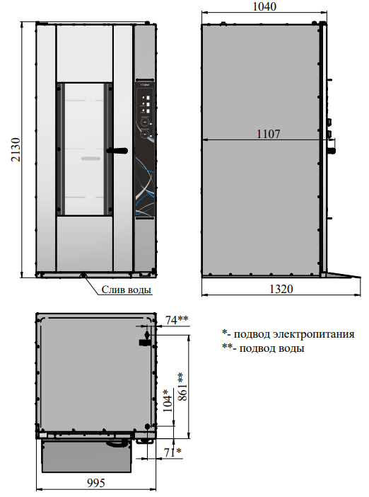 | Габаритные размеры, мм | 995x1107(1320)x2130 |
