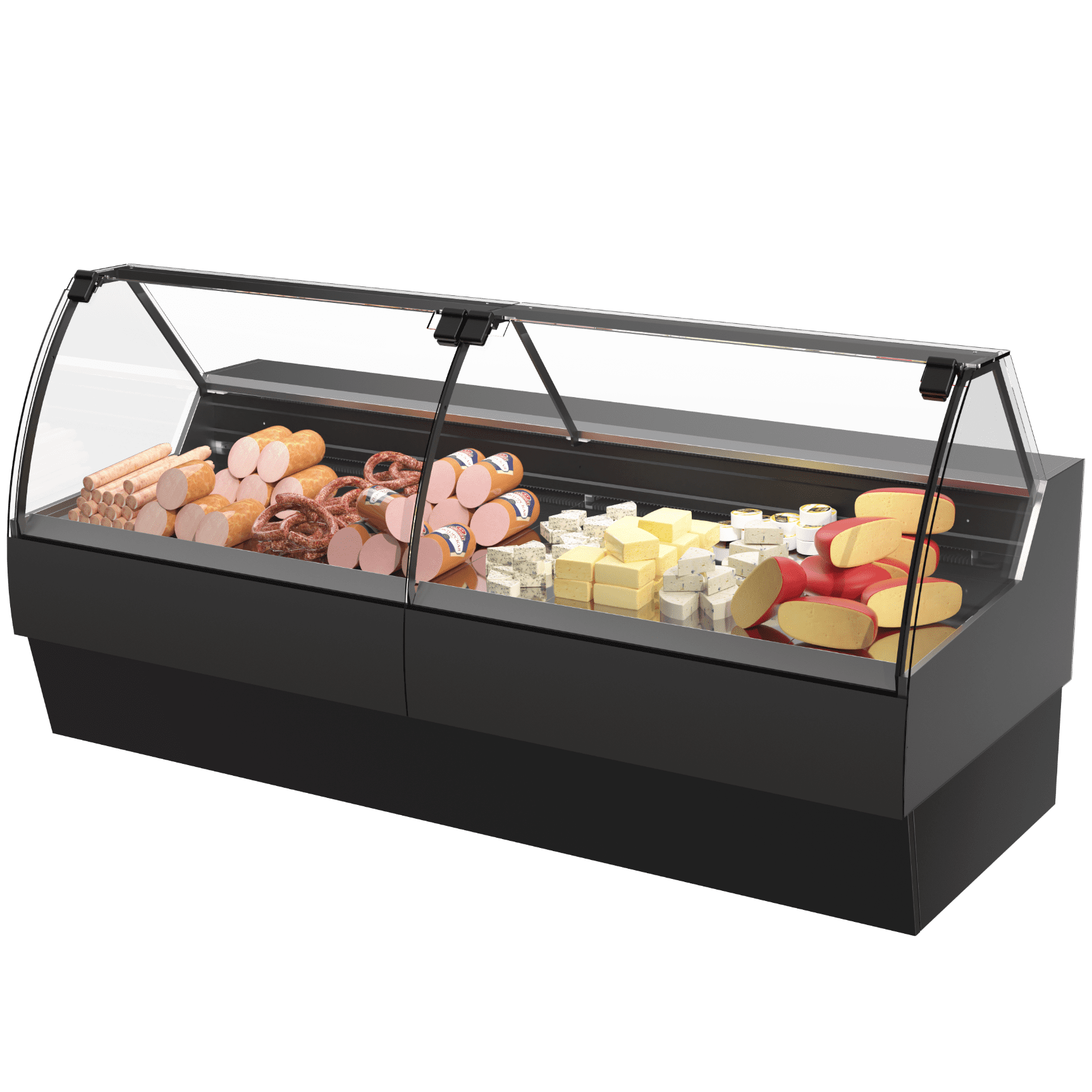 Среднетемпературная холодильная витрина "АЛЯСКА 2500" статическая со встроенным агрегатом применяется в сфере общепита и торговли для демонстрации и хранения продуктов питания. Энергоэффективна, имеет гибкий дизайн и конструкцию и работает при температуре +25°С, влажности воздуха 60%.