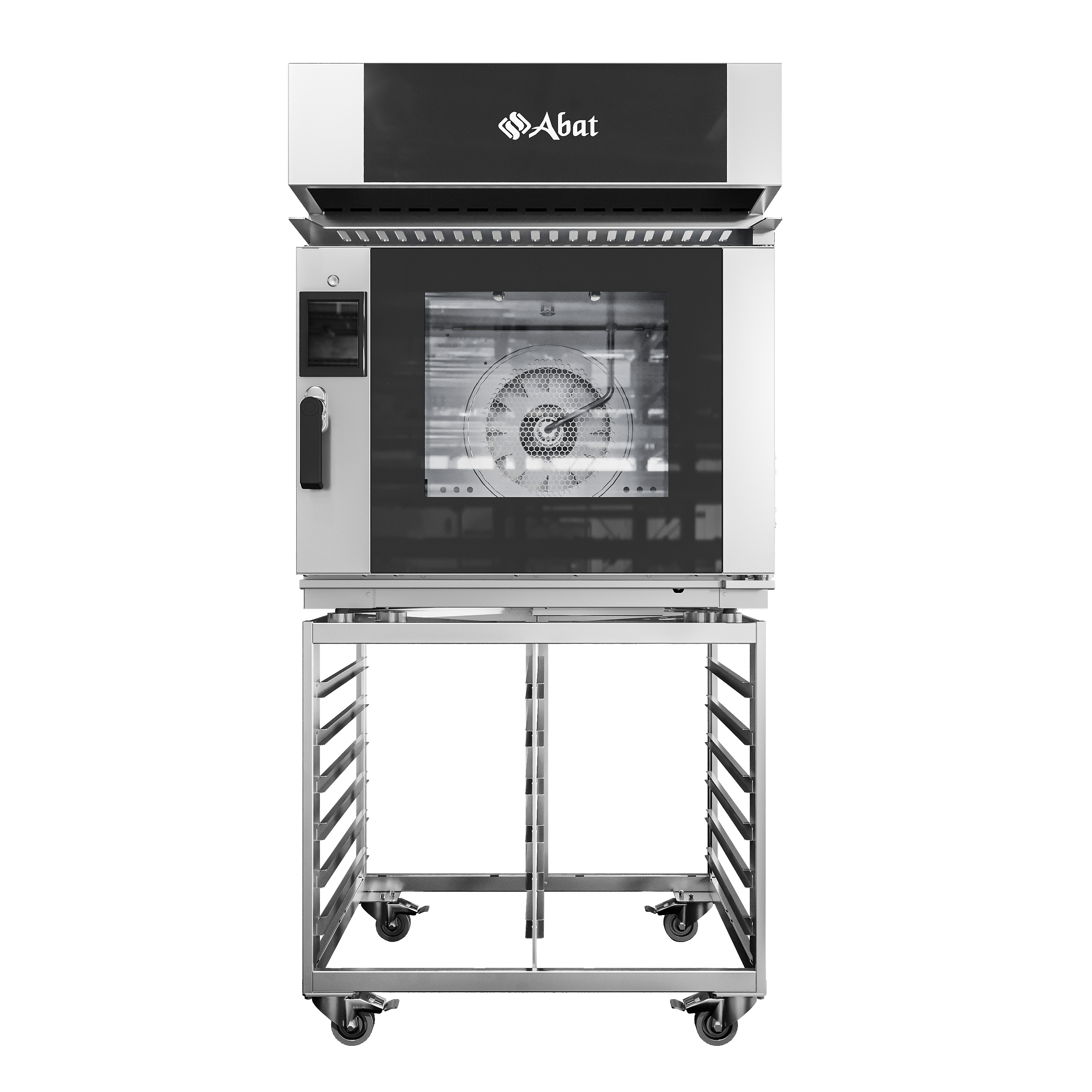 Зонт вытяжной встраиваемый с пароконденсатором ЗВВ-5-6-4П монтируется совместно с конвекционной печью КЭП-5ПП, как при установке в стойке (5+0), так и при установке в колонне (5+5).
